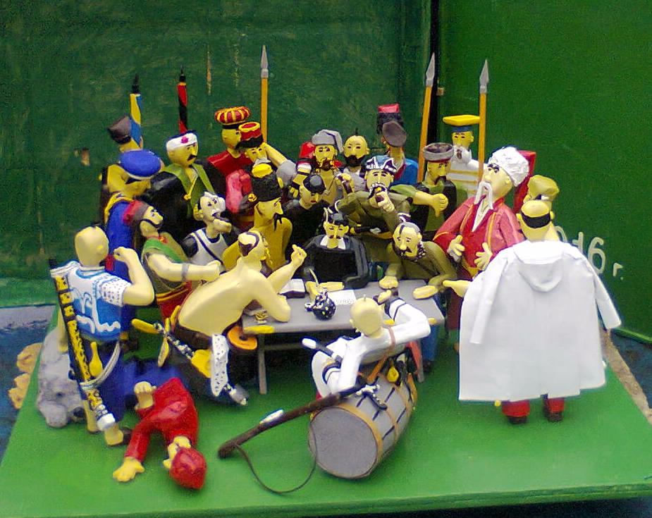 Виньетка с картины Репина. 24 фигуры казаков плюс собака. Все как обычно. Фанера, картон, бумага, краска. Размеры 130 мм. (рост казака)