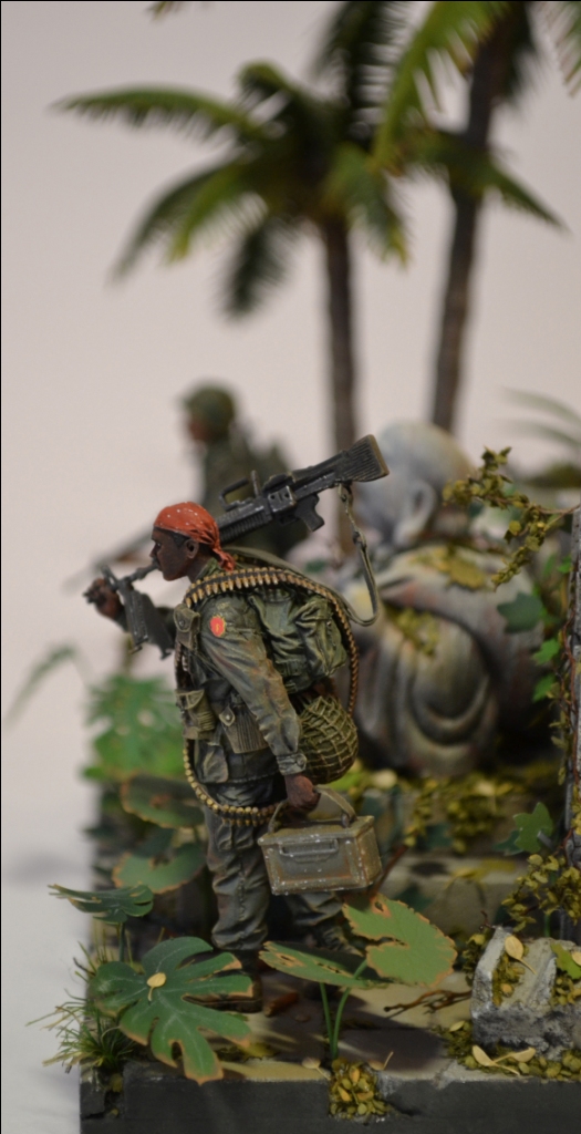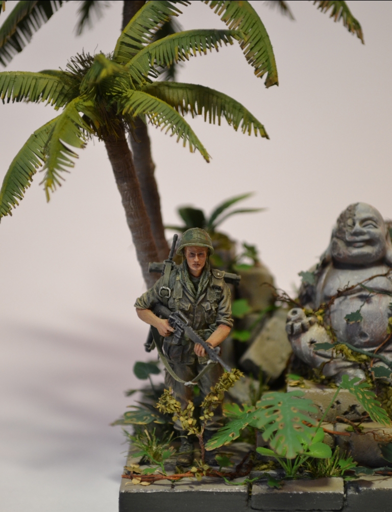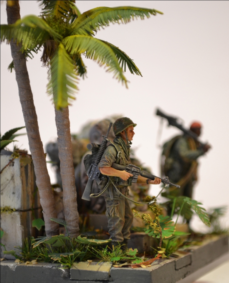 ...приветствую всех, коллеги! Вот и завершена работа над диорамкой. Это первая моя работа на профессиональном уровне в масштабе 1/35, а так больше влечет авиация в 72-м. Буду краток, причина всему этому: множество фильмов, как художественных так и документальных. А главное удалось побывать в военных музеях и в некоторых местах из многих этой войны (Ханой, Сайгон).