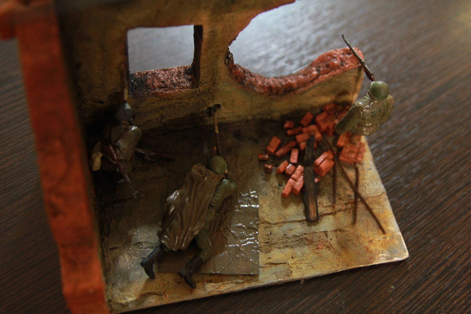 Все кроме арматуры, брезента и фигурок с оружием я решил приклеить к полу