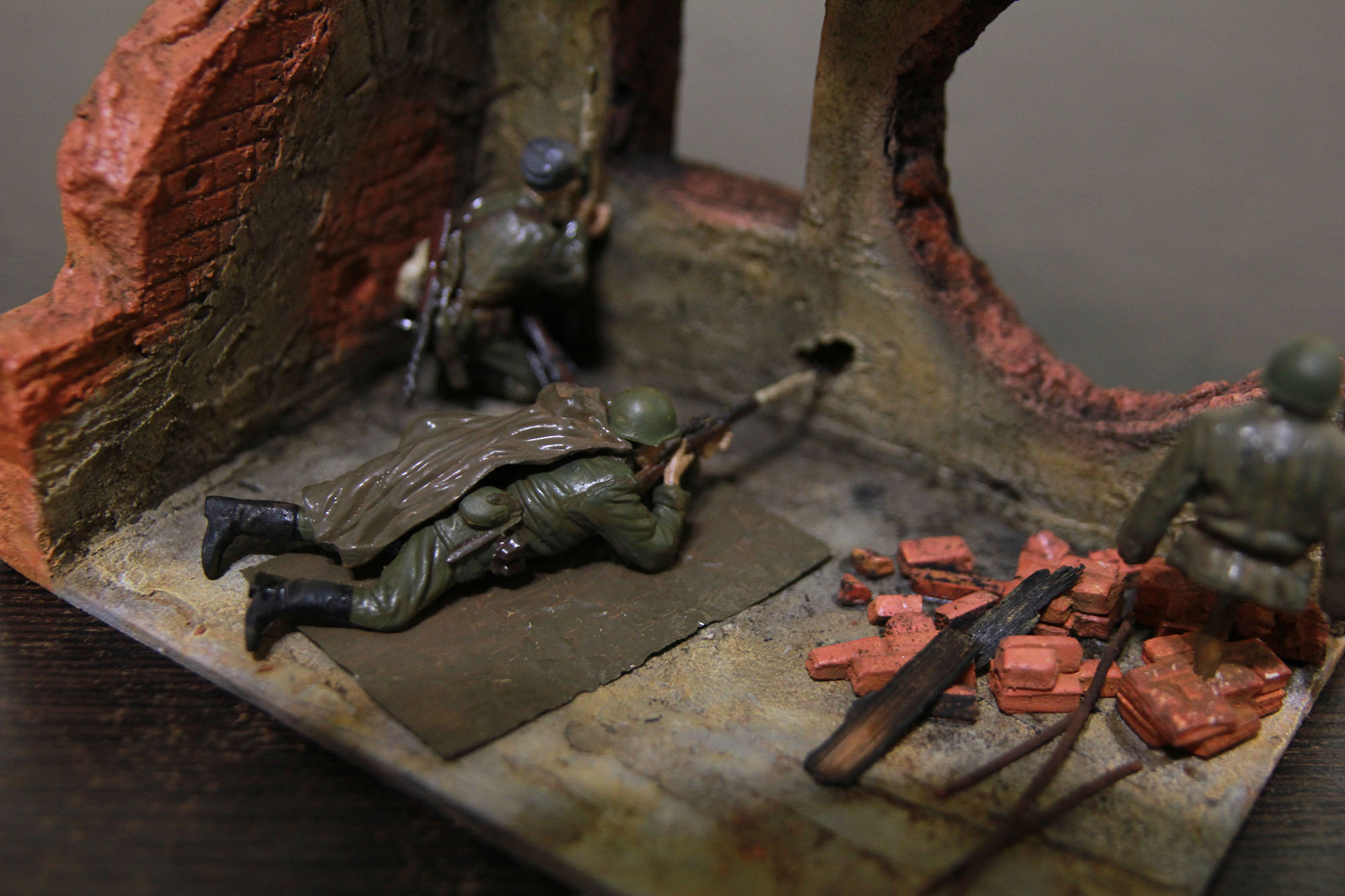К сожалению на фото повылазила "глянцевость" красок на фигурках и брезенте. Когда смотришь без подсветок особо не заметно за пигментами.