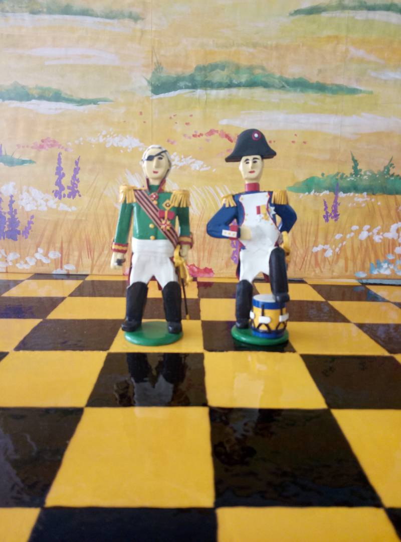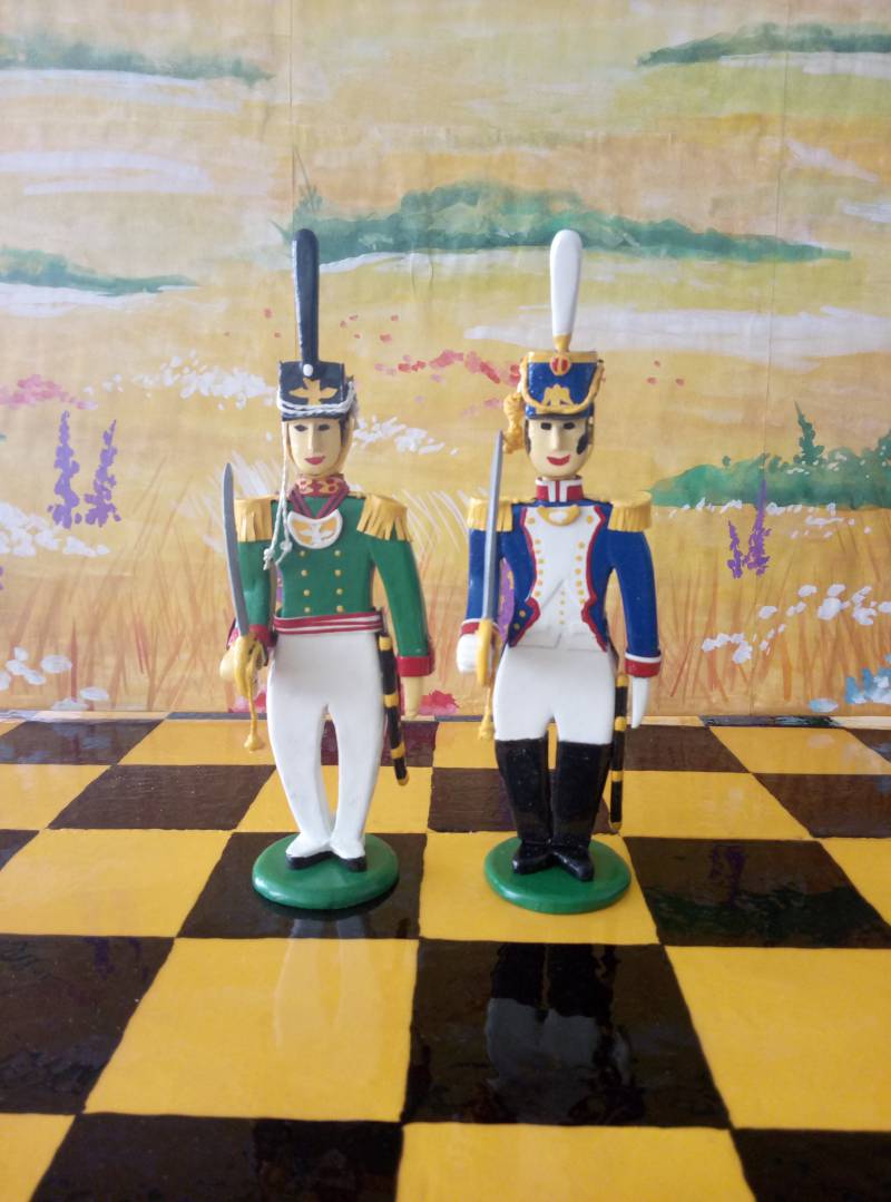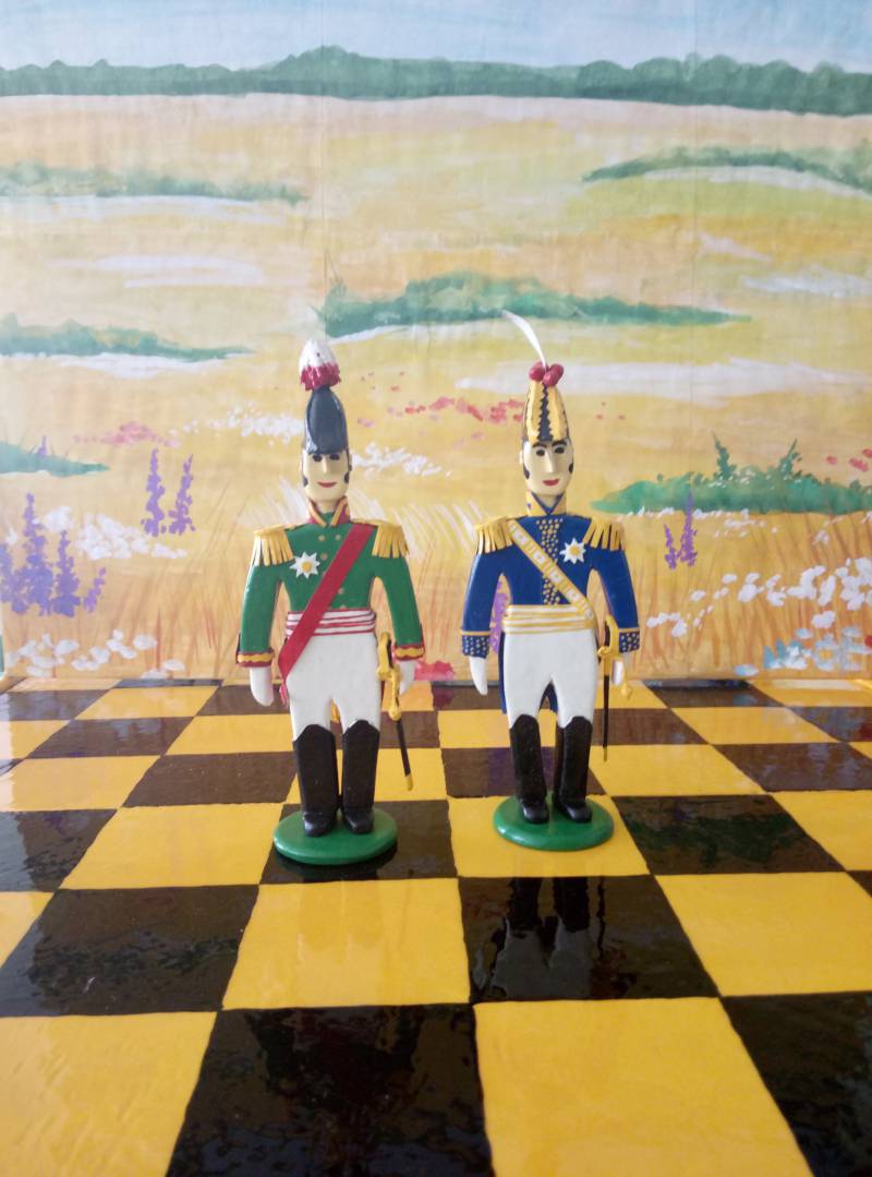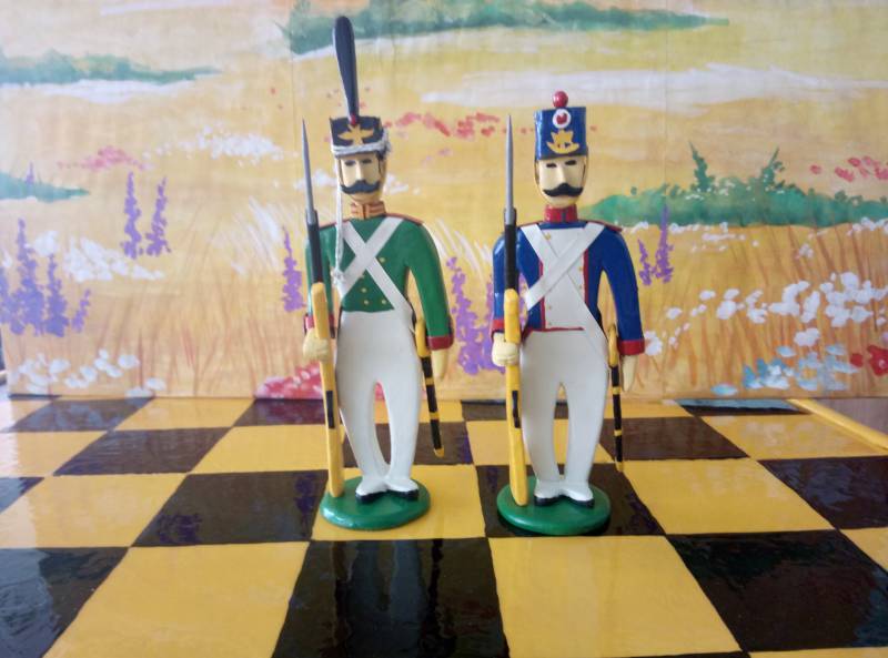Выкладываю шахматы. Противники - русские и французы. Как и все предыдущие миниатюры сделаны из фанеры. Привожу расшифровку миниатюр.