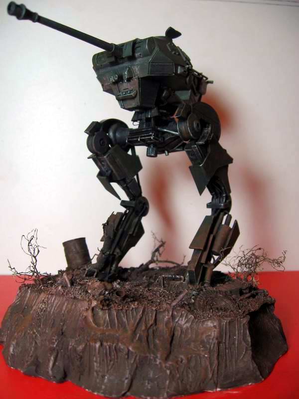 Лапы очень круто вышли.Возьму на заметку.Башню бы чуток доработать,футуризма добавить,но это мое мнение.Молодец!Если выдерживать стиль то сюда фигурка эссесовца просится в каске, черном плаще,противогазе а в руках MG42 персонаж из Волькинштейна.