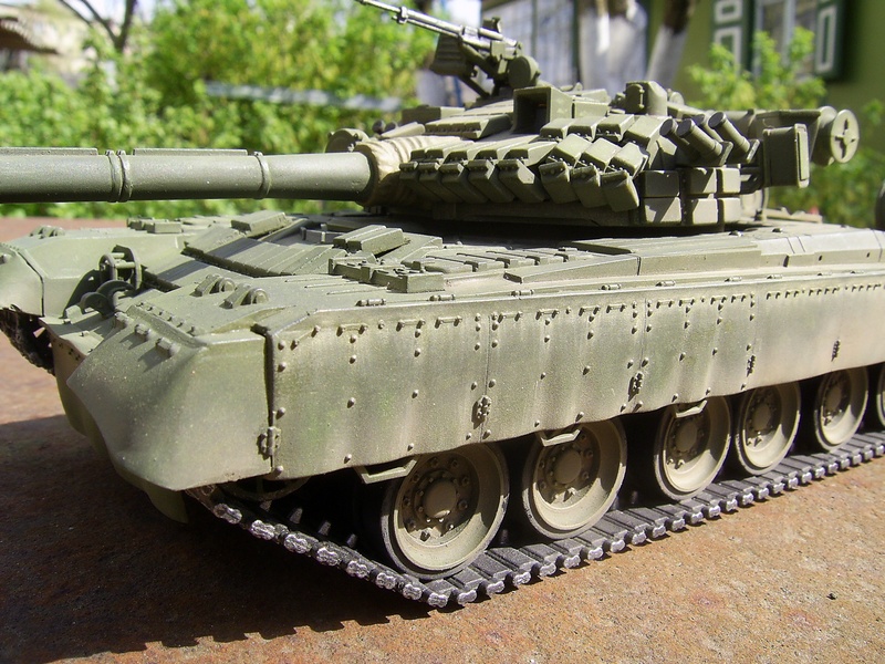 Коллеги, недавно зкончил сборку и покраску модели Т-80 с активной броней от "Звезды". Хочу узнать ваше мнение и советы по качеству покраски. Это обычная изкоробочная сборка, сама модель делалась просто на подарок. Задумана очень простенькая диорама: танк едет по грунтовой дороге где-то в степи. Сама основа и трава еще не готова. Модель красилось хамброловскими эмалями, потом акриловая тамия-смоук и пигменты от тамии.