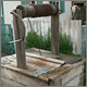 Дощатый колодец с навесом и скамьей